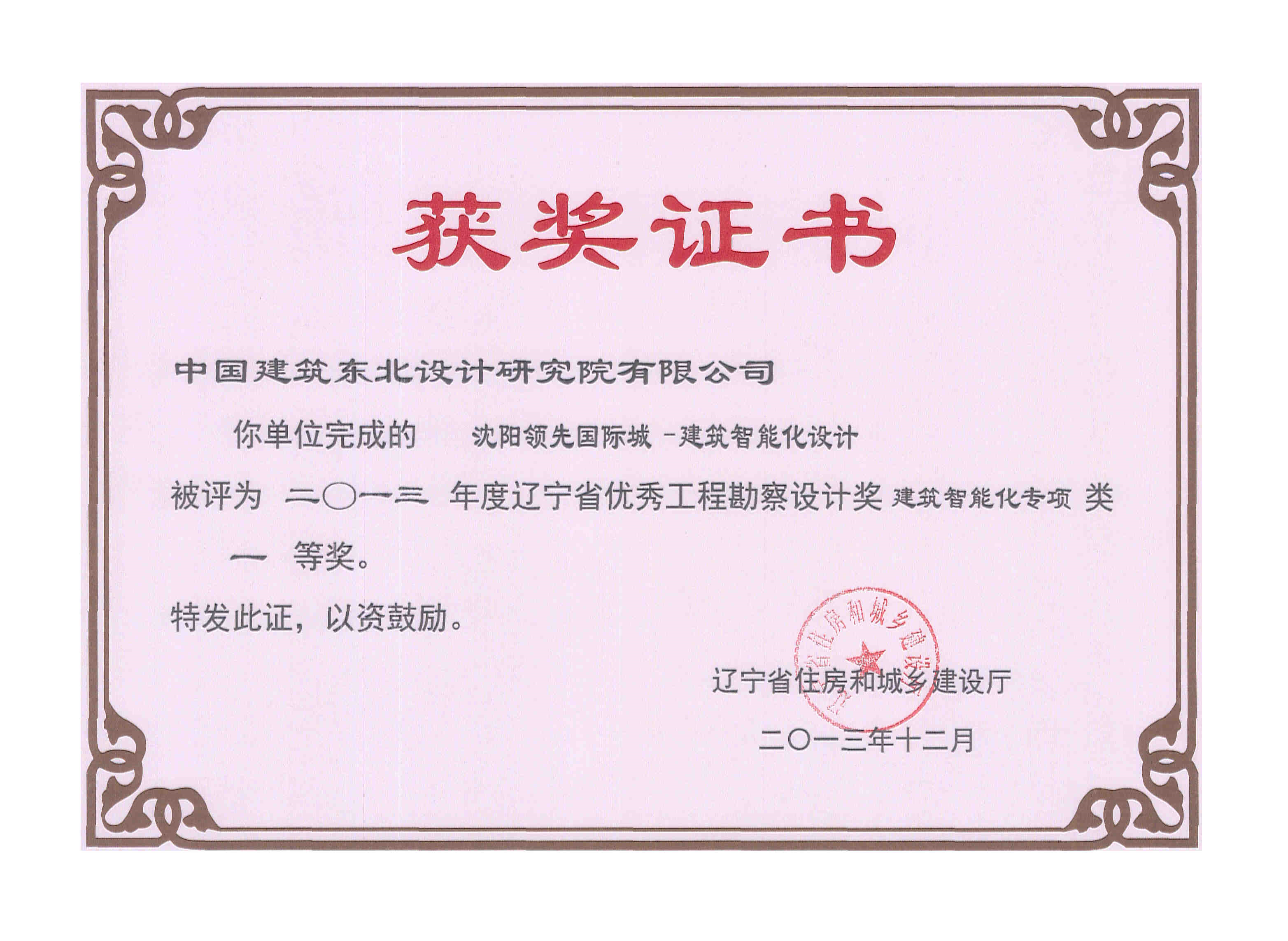 5 沈阳领先国际城–建筑智能化设计 智能化一等奖