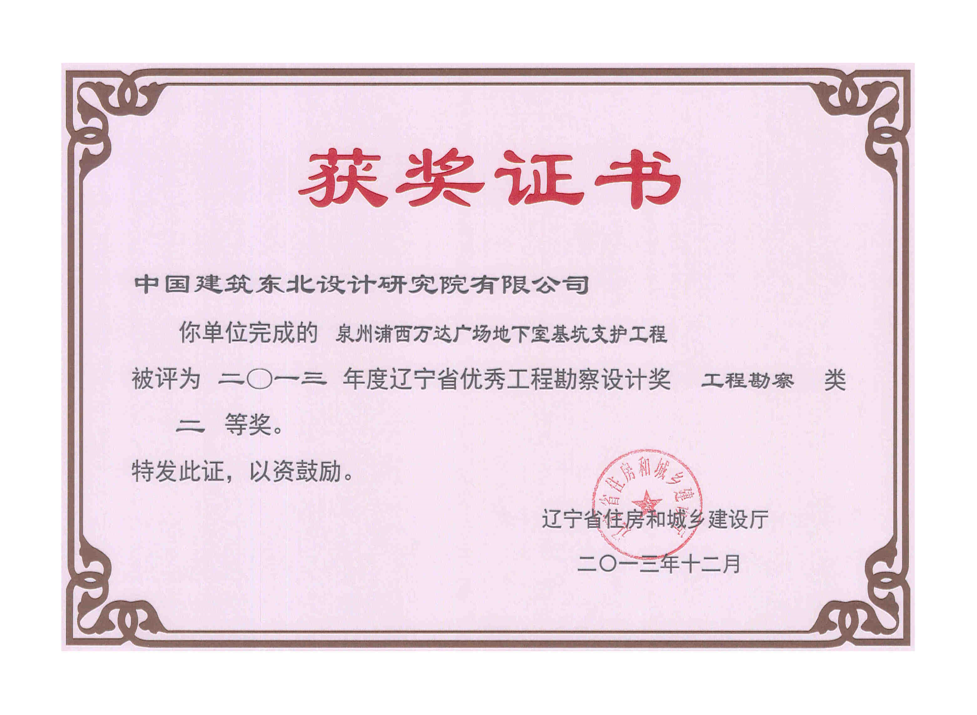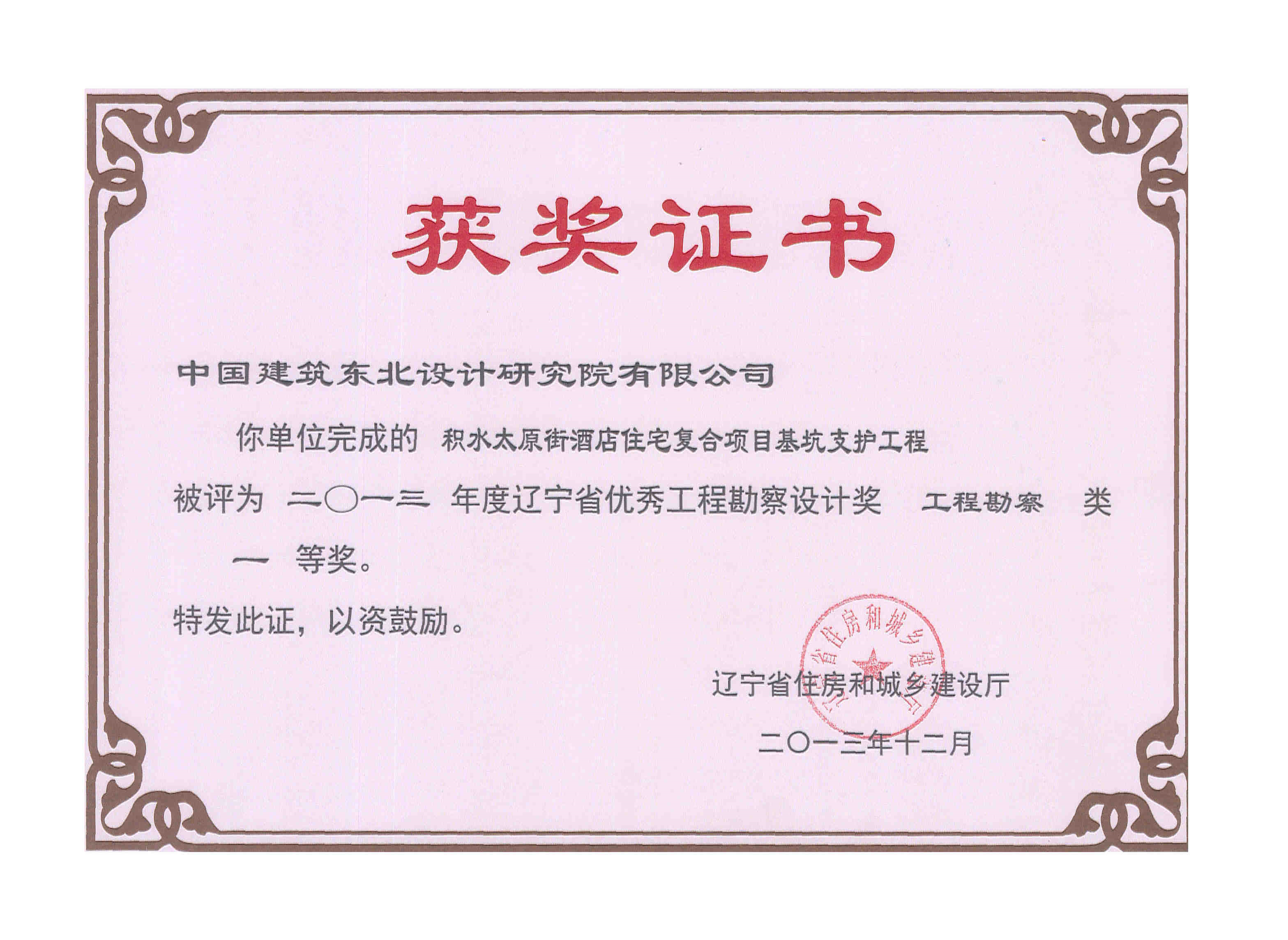 6 沈阳积水太原街酒店住宅复合项目基坑支护工程 工程勘察一等奖