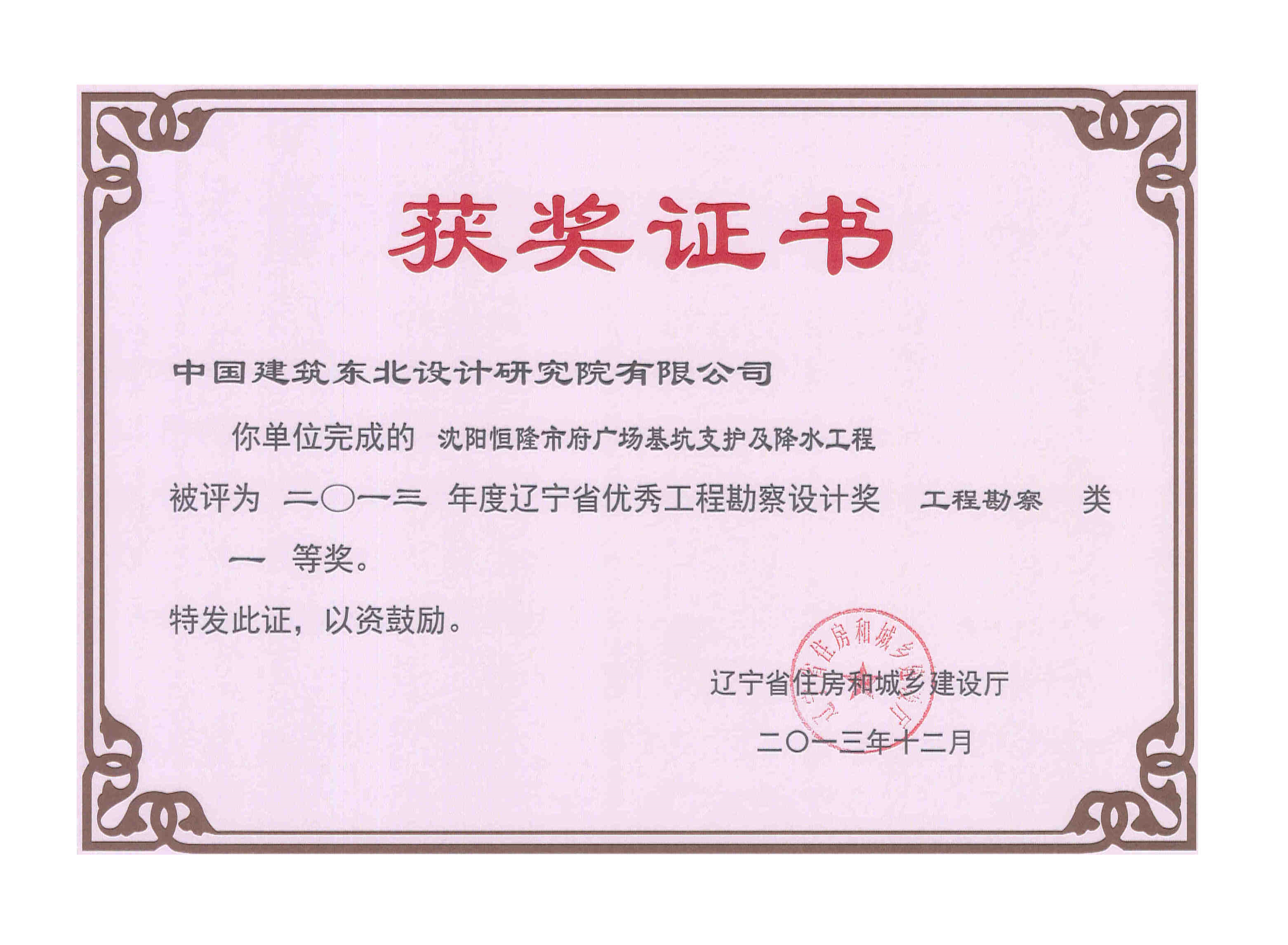 7 沈阳恒隆市府广场基坑支护及降水工程 工程勘察一等奖