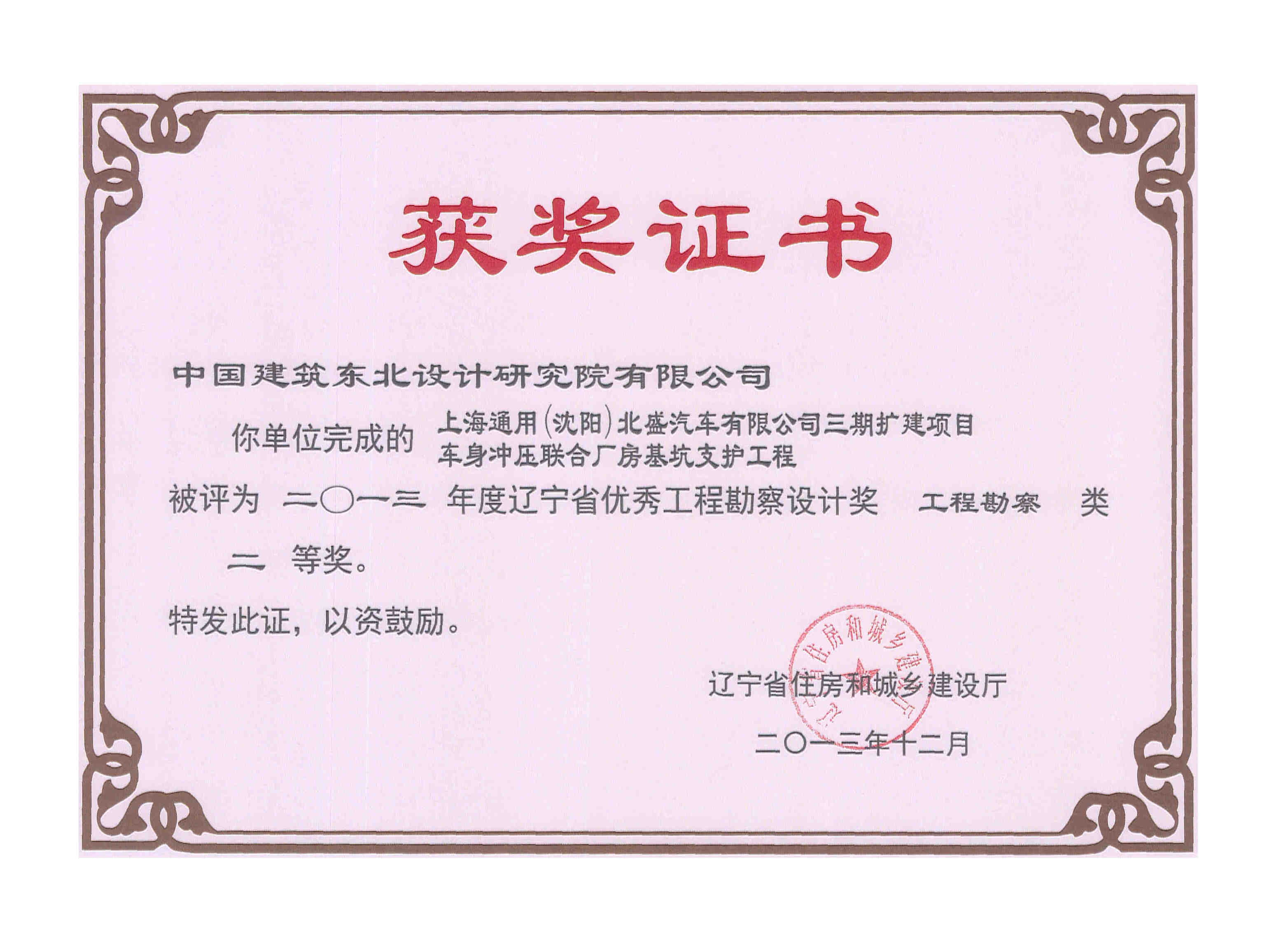 9 上海通用(沈阳)北盛汽车有限公司三期扩建项目车身冲压联合厂房基坑支护工程 工程勘察二等奖