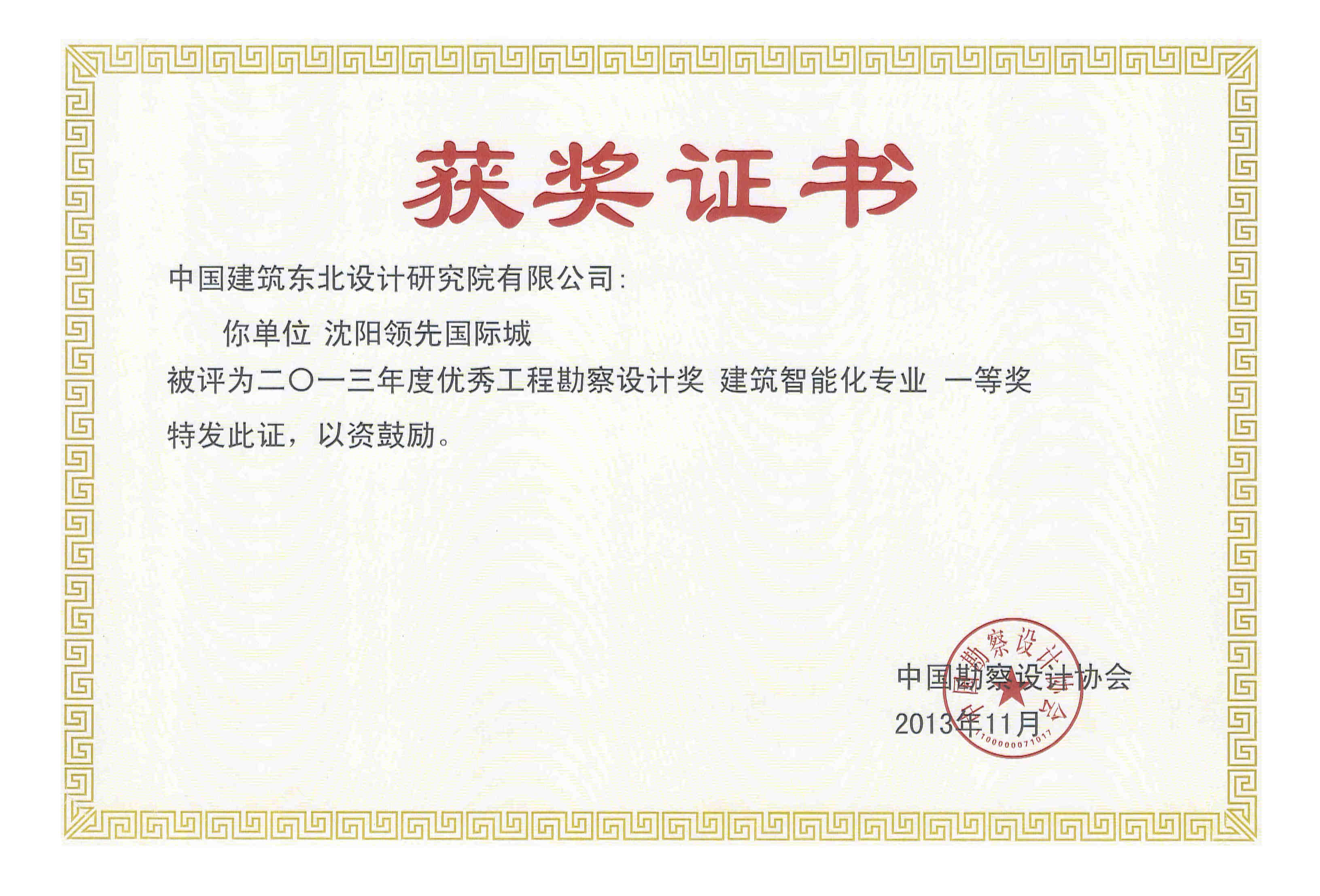 3 沈阳领先国际城 建筑智能化一等奖