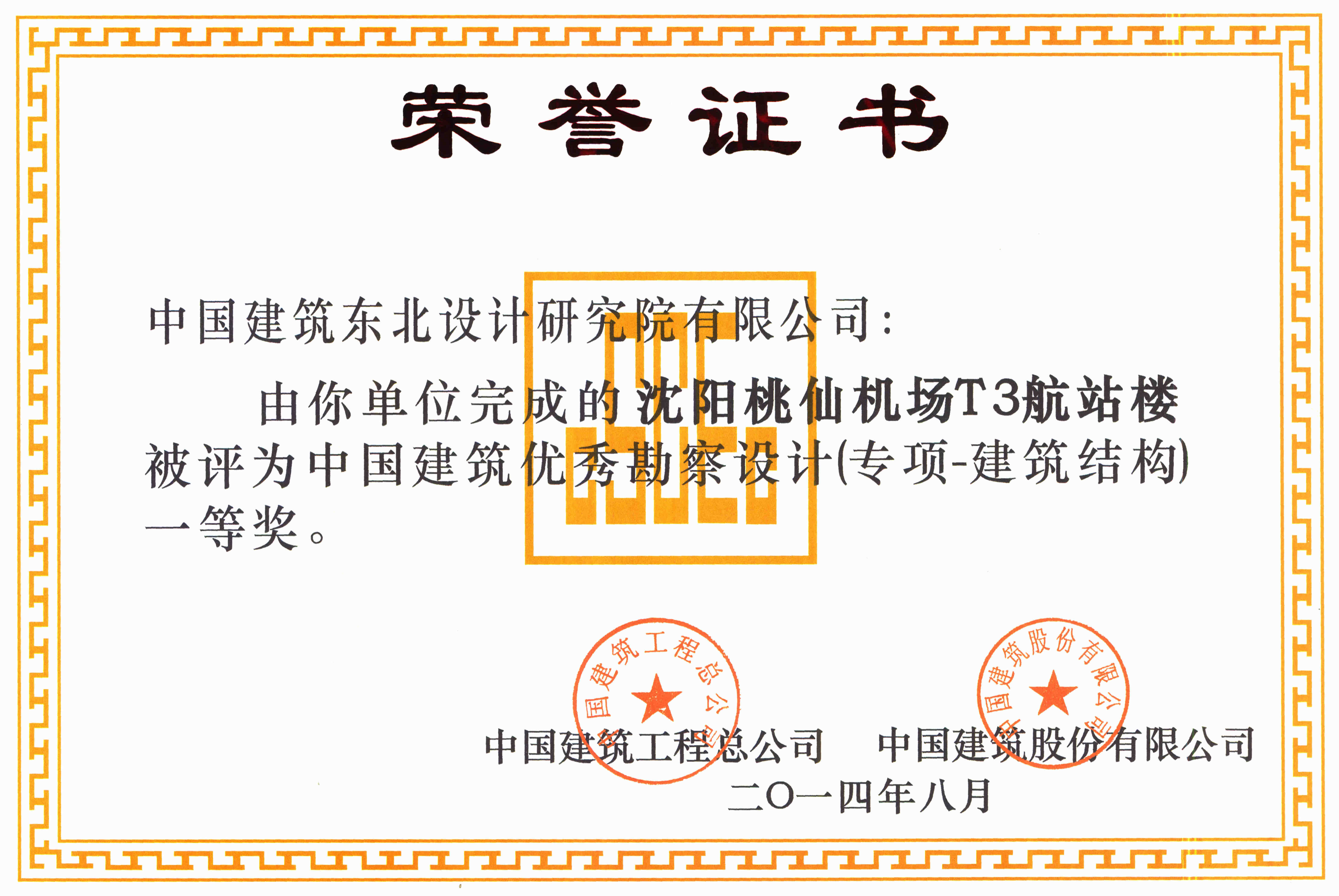1 沈阳桃仙国际机场T3航站楼 建筑工程一等奖