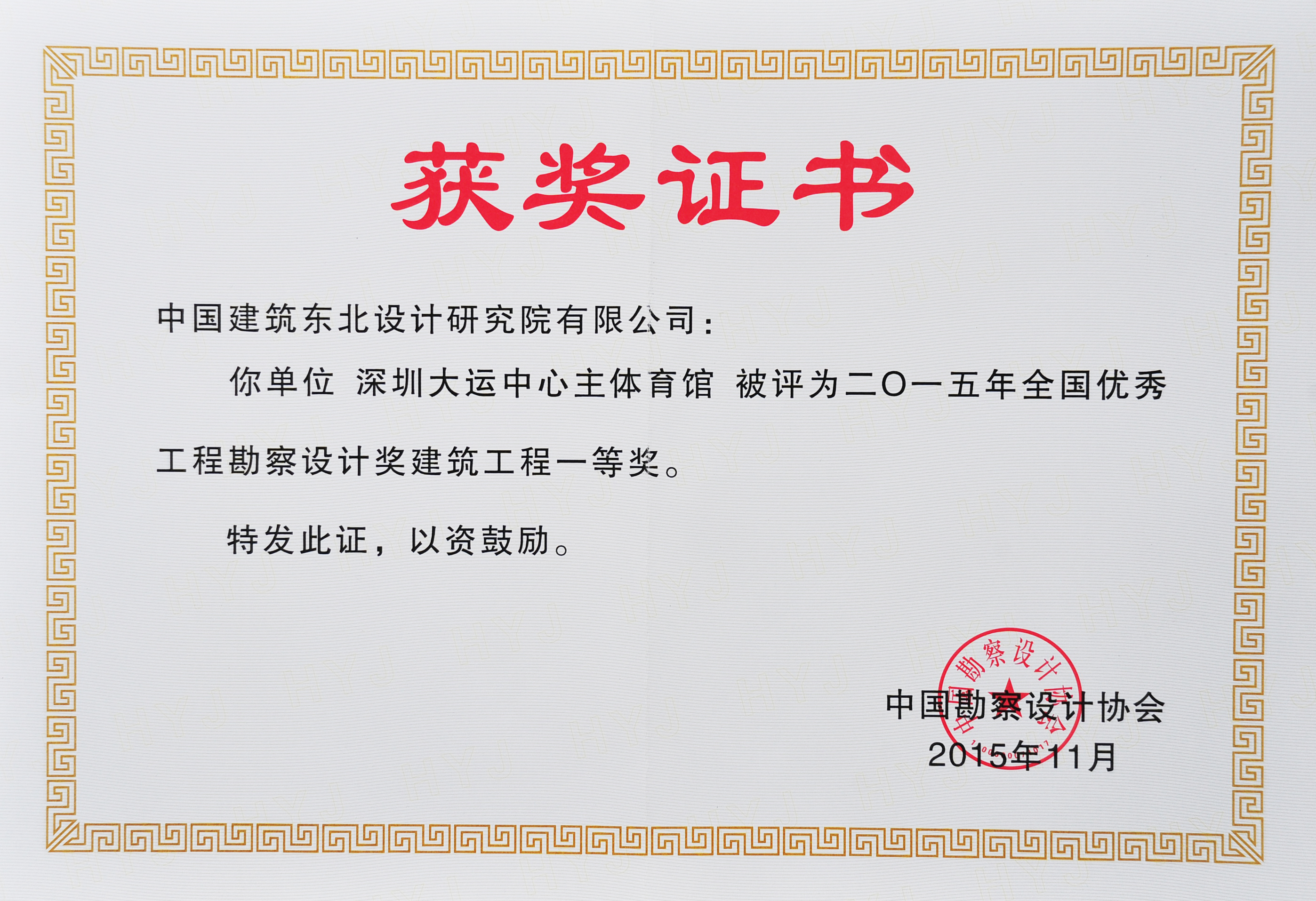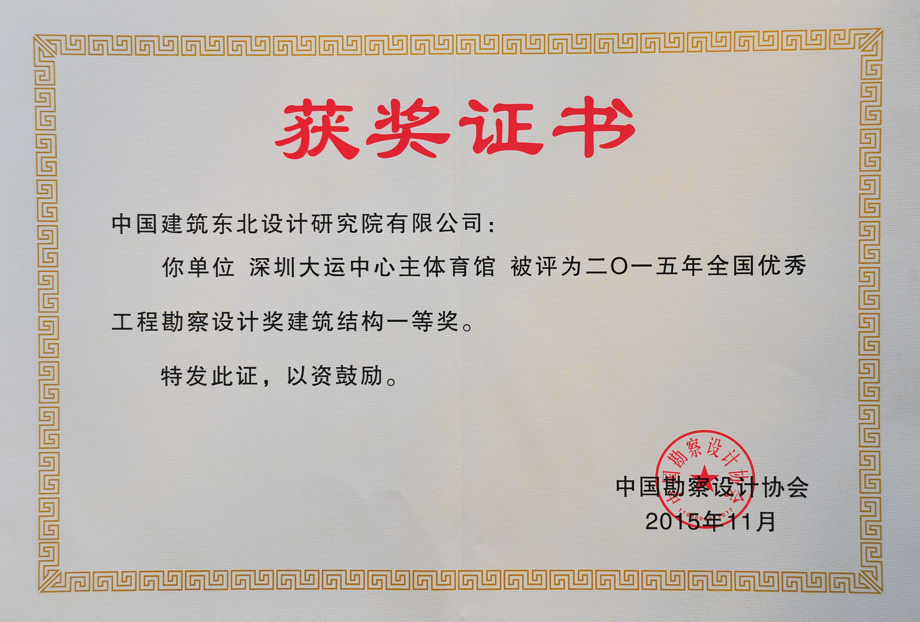 1 深圳大运中心主体育馆 建筑工程一等奖 深圳世界大学生运动会体育中心主体育馆作为2011年世界大学生运动会的主赛场之一,是由德国gmp设计公司与中国建筑东北设计研究院合作设计完成的一座综合性体育场馆。位于深圳市龙岗区龙祥路和黄阁路交界处,总建筑面积73761㎡,可容纳观众18000余人,是国内规模最大的体育馆之一。