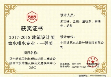 4 郑州新郑国际机场二期项目T2航站楼及综合交通换乘中心 给水排水专业一等奖
