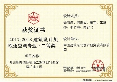 6 郑州新郑国际机场二期项目T2航站楼扩建工程 暖通空调专业二等奖
